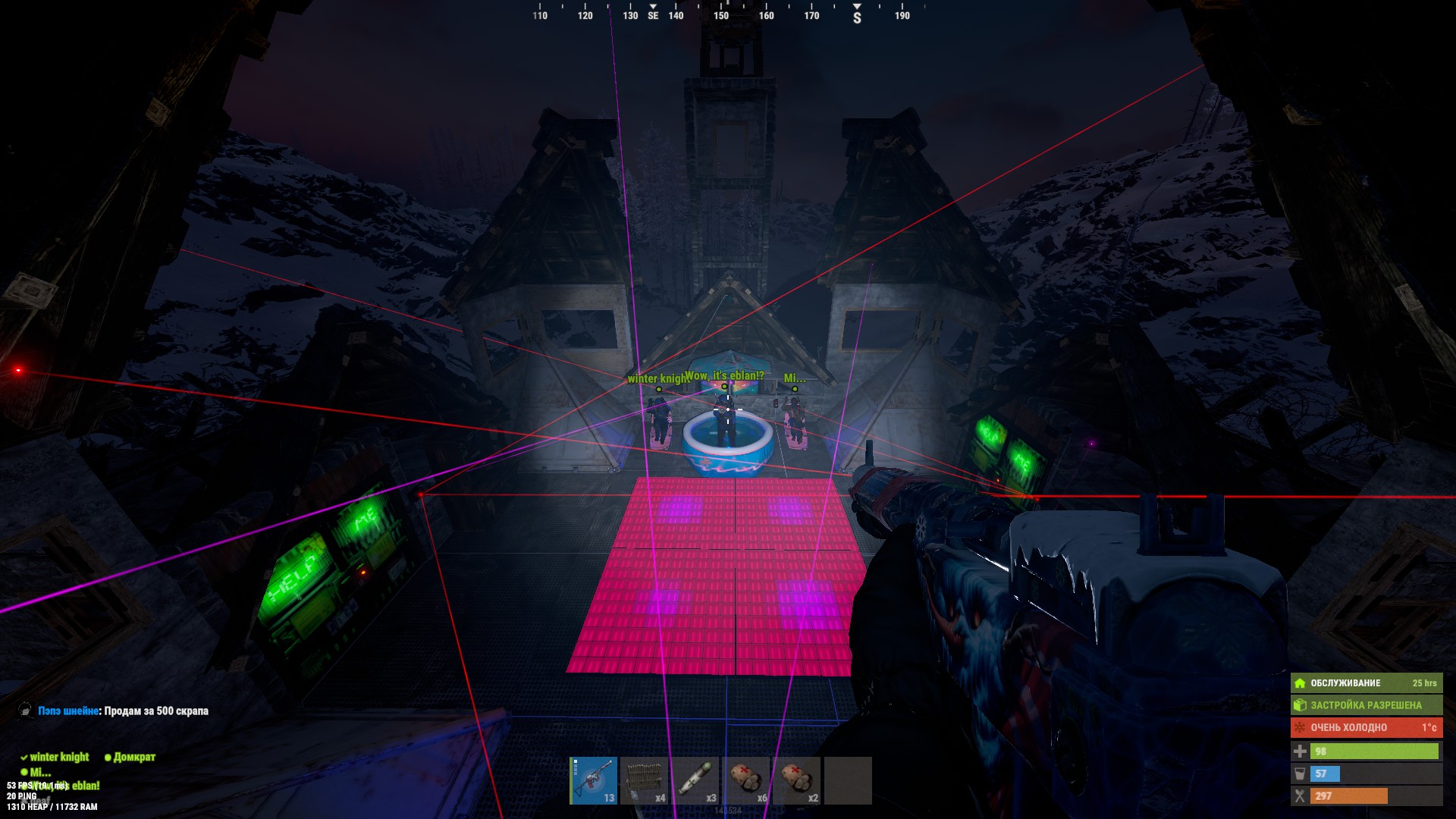 serafim bushuevv prime322 Вайп 2026-01-16/2026-01-23 Назад СерверX2 КвадратH17 Жильцов5 Скриншотов1 Автор winter knight Добавлено17.01.2026 Галерея постройки 1 Описание постройки топчик)))!! Жильцы базы 5 winter knight Домкрат Wow, it's eblan!? user1234 Mi... Оценили постройку 1 1 user1234